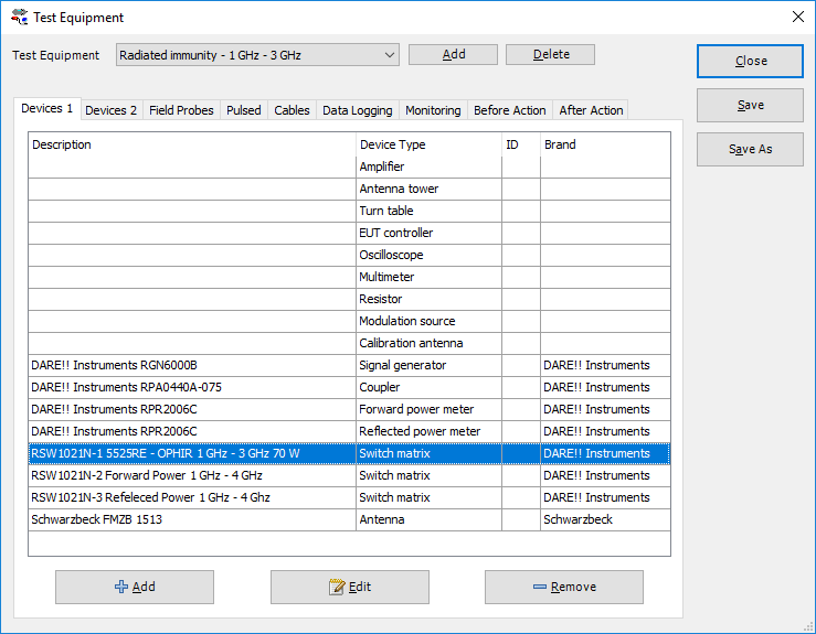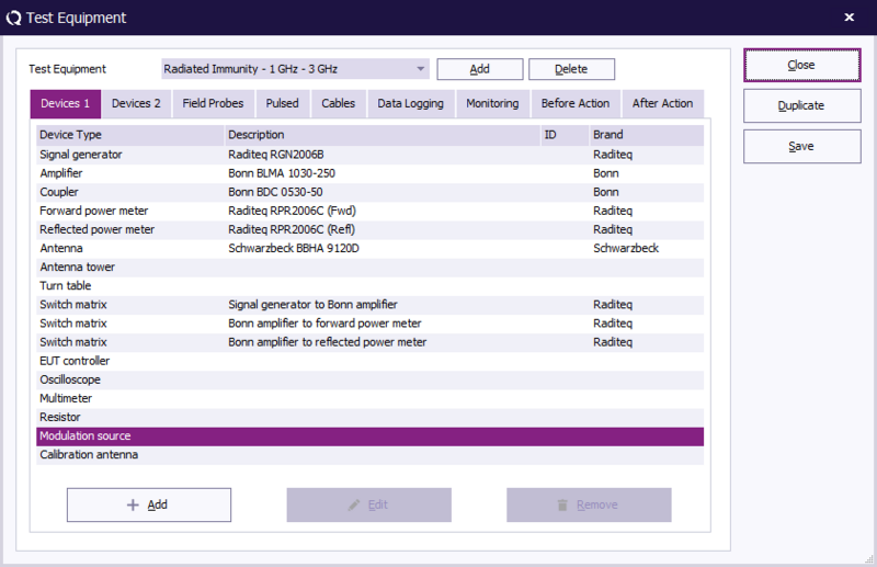 A screenshot of the high frequency test site configuration "Radiated Immunity - 1 GHz - 3 GHz", as it is used in RadiMation Application Note 123.