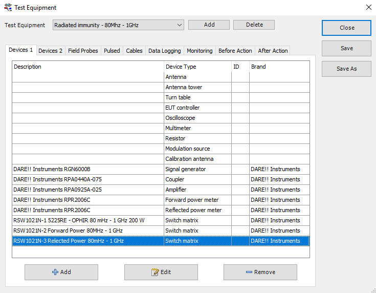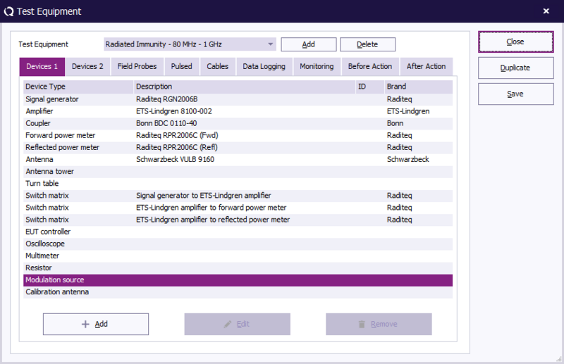 A screenshot of the low frequency test site configuration "Radiated Immunity - 80 MHz - 1 GHz", as it is used in RadiMation Application Note 123.